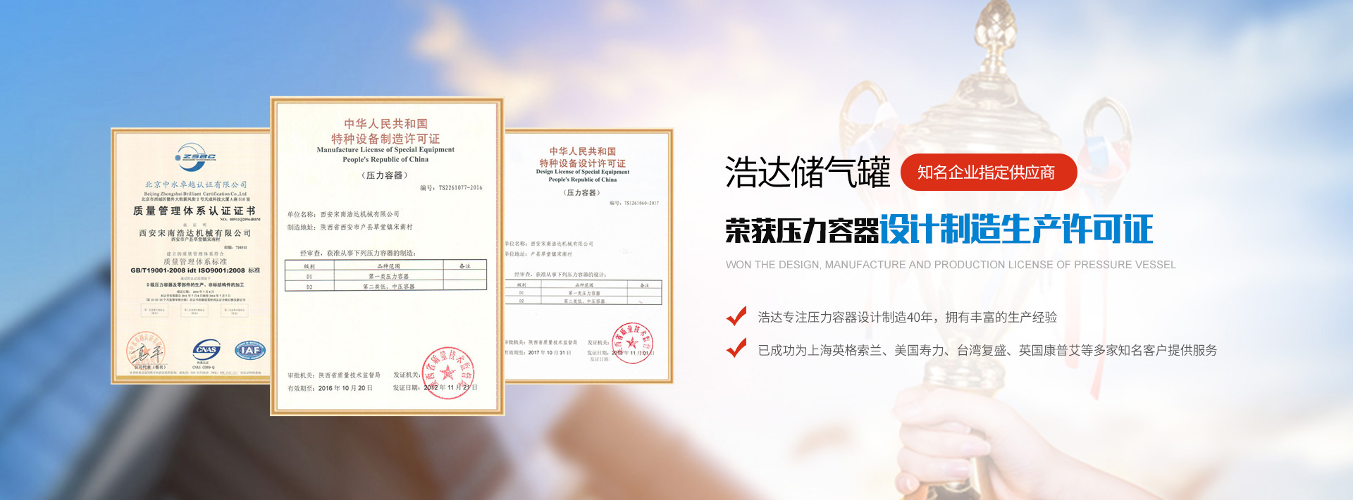 陜西較早獲得壓力容器制造許可證的廠家